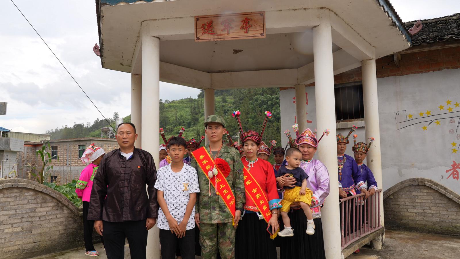 9月14日,被誉为“双拥村”的广南县者兔乡者偏村为壮族青年陆显俊隆重举行新兵欢送仪式。陆显俊作为家族第四代军人,胸佩大红花,身着崭新军装,在亲人和乡亲们的簇拥下踏上军旅征程,延续一家四代保家卫国的光荣传统。