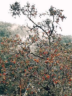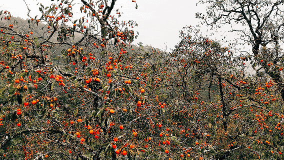 等到暮色四合,炊烟从各家屋顶升起,柿子树便成了村里最亮的景。红灯笼似的柿子在暮色里愈发鲜艳,像是给归家的人点亮的灯。