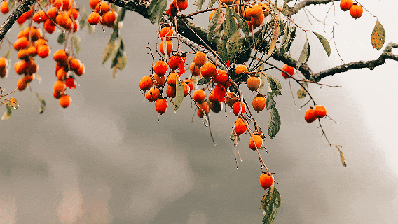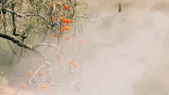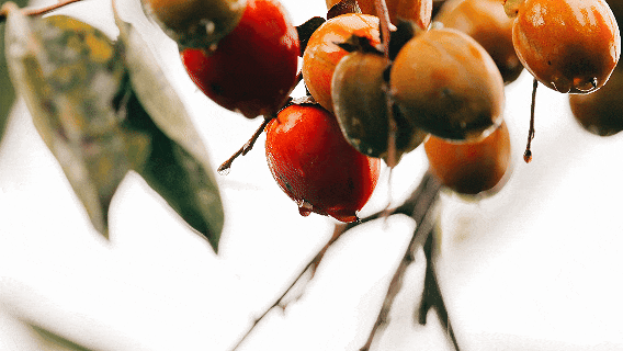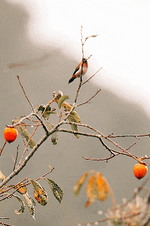 雨后的清晨,雾还没散尽,露水滴在泛红的果皮上,折射出细碎的光,像是给柿子镶了圈银边。早起的鸟儿落在枝头,啄一口熟透的果肉,甜香便顺着裂开的小口漫出来,夹杂着泥土的湿润和落叶的清香,在空气里晕开。